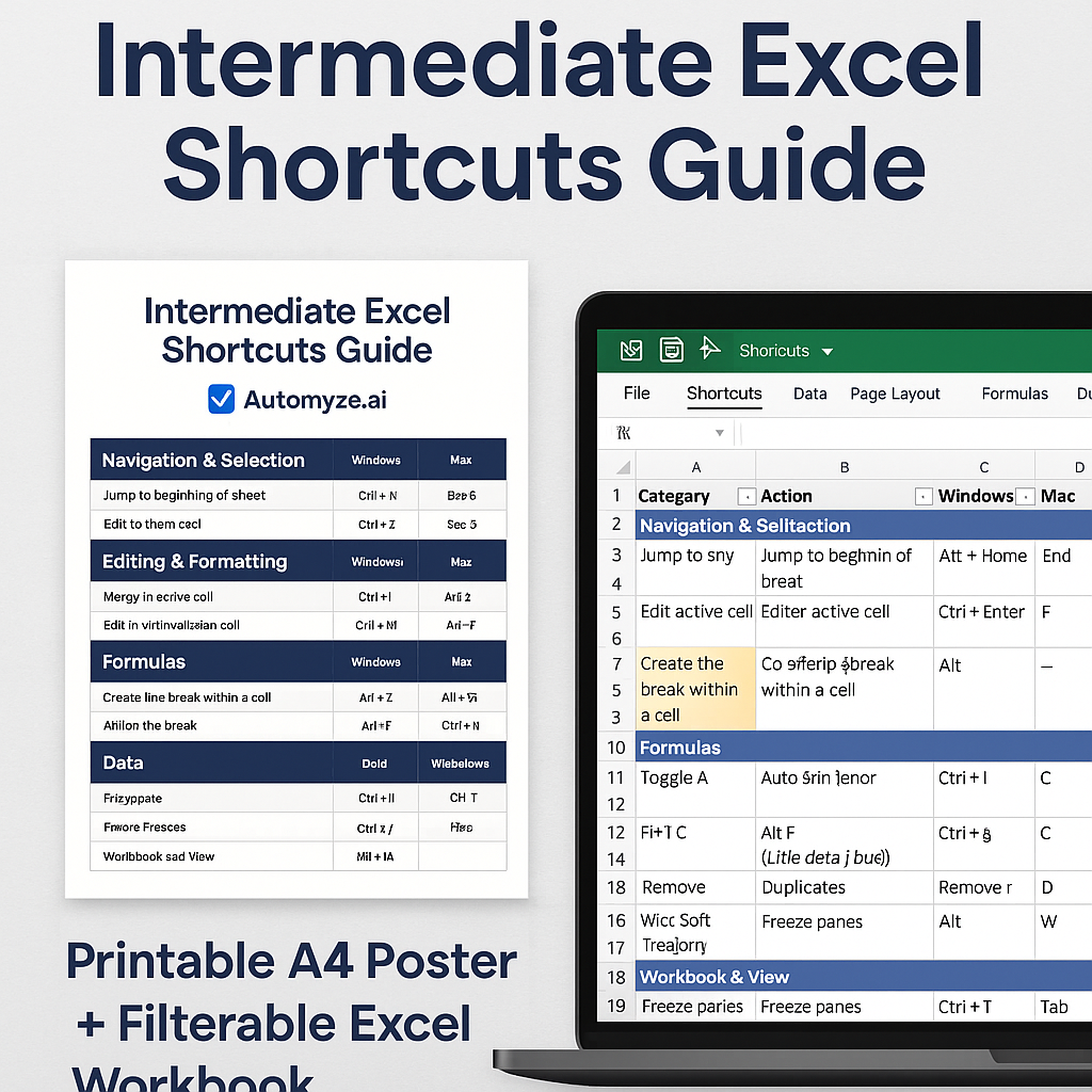 Take your Excel skills to the next level with Automyze.ai’s Intermediate Excel Shortcuts Guide.